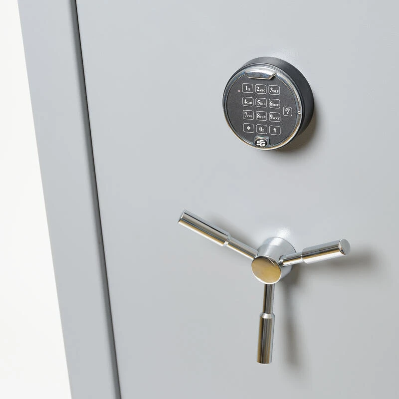 La serrure électronique de cet armoire permet la saisie d’un code de 6 chiffres.