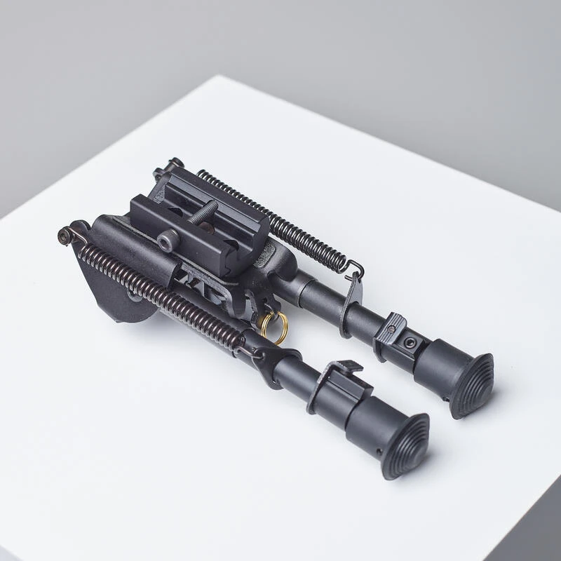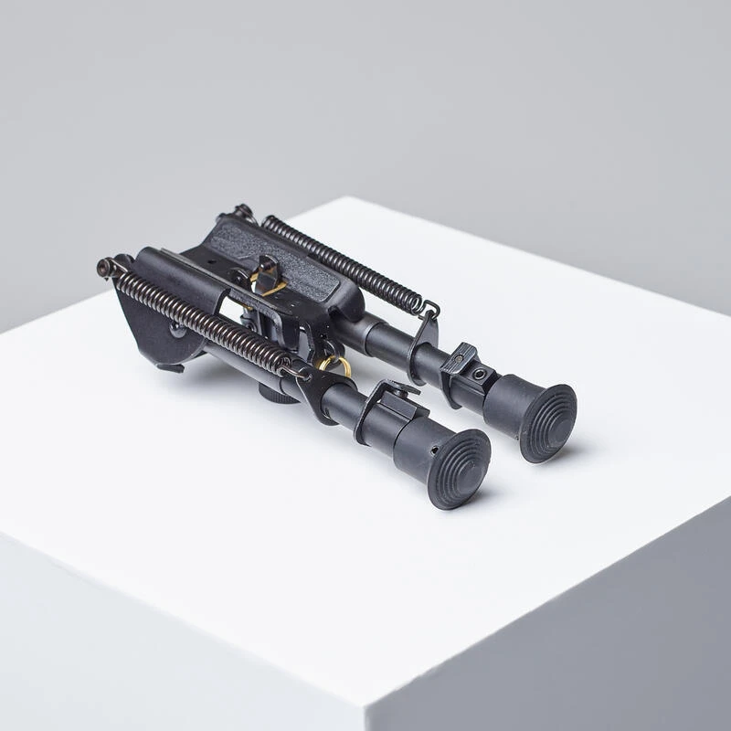 Le montage de ce bipied est effectué en moins d’une minute. Pincez la protubérance a côté de la vis de serrage, la mâchoire s’ouvre, insérer l’anneau de grenadière ou l’adaptateur picatinny dans la mâchoire. Serrez la vis sous le bipied… Le montage est terminé.