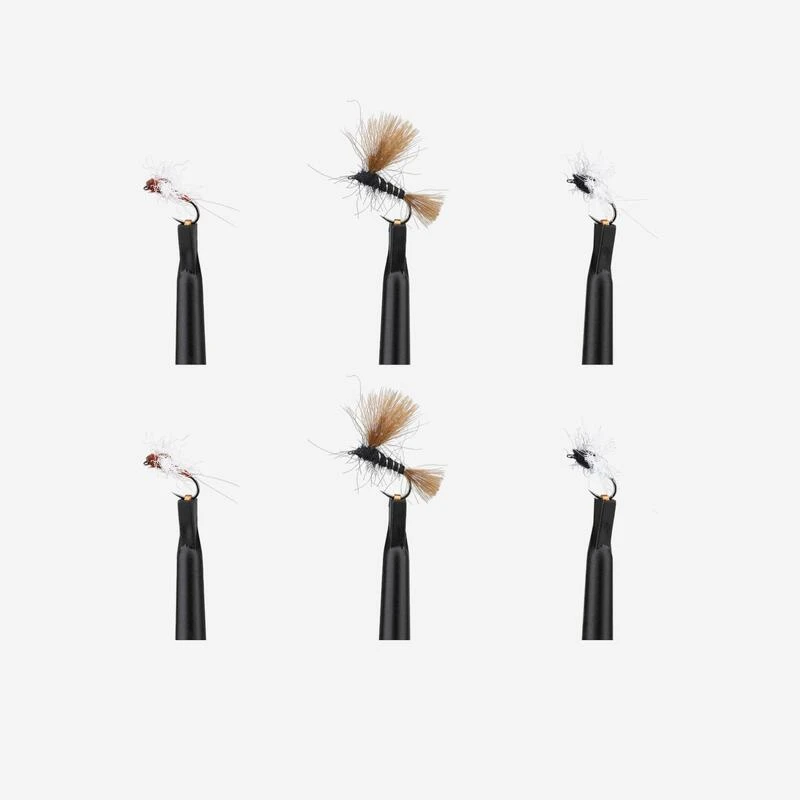 Notre équipe de pêcheurs a développé ce pack de mouches sèches pour la pêche à la mouche en surface des truites, ombres et poissons blancsSélection de mouches sèches permettant une pêche fine et subtile en rivière mais aussi en lac lorsque les poissons se montrent difficiles. Chaque modèle est proposé en 2 exemplaires