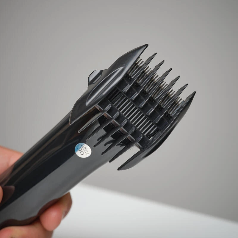 Posez le guide de coupe bien à plat sur le pelage de votre animal, et progressez lentement dans le sens de repousse du poil en veillant à rester bien parallèle à la peau.