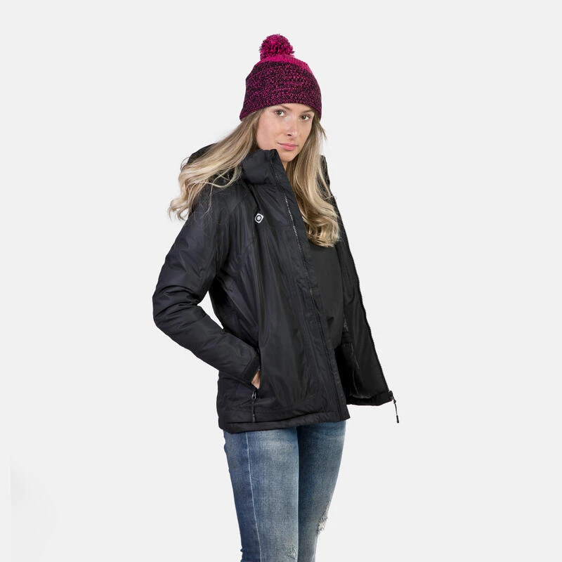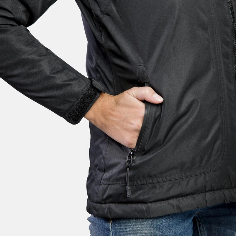Veste imperméable avec garniture en fibres. Son tissu Mount-Tex colonne d’eau 5000 mm et respirabilité ± 5000 g/mq/24, protège de l’eau et du vent. Coutures thermosoudées et capuche amovible.